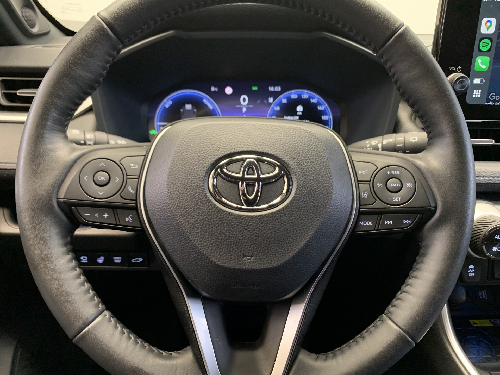 Hij is klaar voor nog jaren rijplezier, deze Toyota RAV4 uit 2024. De onderhoudshistorie van deze auto is bekend, er staat 25018 kilometer op de teller. Deze hybride Toyota RAV4 gaat slim om met energie. Door rijden en remmen wordt de accu van de elektromotor opgeladen, die de brandstofmotor en handje helpt of zelfs de aandrijving overneemt. Het comfort van de stoelverwarming geeft in koude dagen nét dat beetje extra. De bagageruimte is toegankelijk via een comfortverhogende elektrische achterklep. U wordt in deze auto ook getrakteerd op 19 inch lichtmetalen velgen, Full LED koplampen, trailer assistent, zwarte hemelbekleding, aluminium dakrailing en elektrisch inklapbare buitenspiegels.