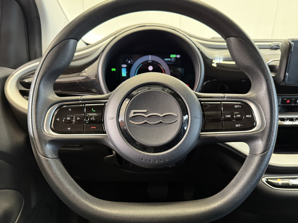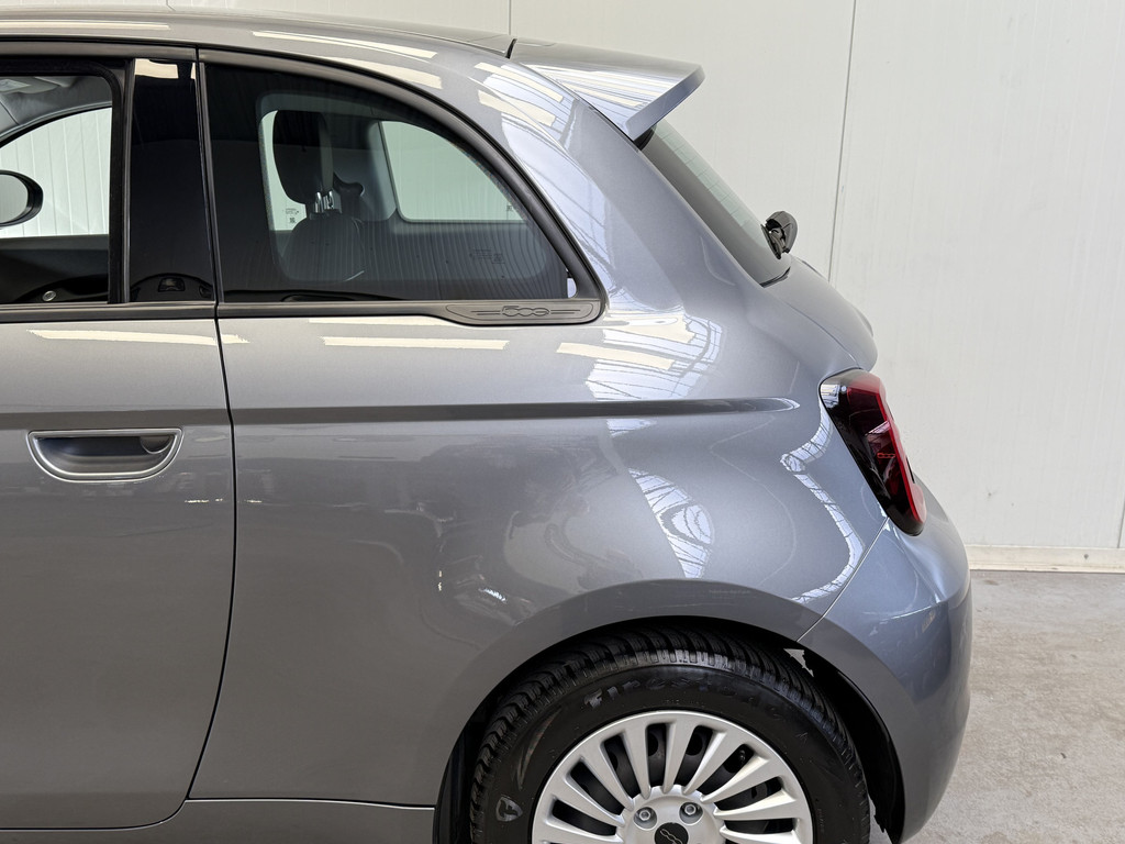 Deze Elektrische Fiat 500e heeft een onderhoudsbeurt gehad inclusief 4 nieuwe AllSeason banden met sneeuwvlok markering. U kunt dus ook op wintersport met deze Fiat.