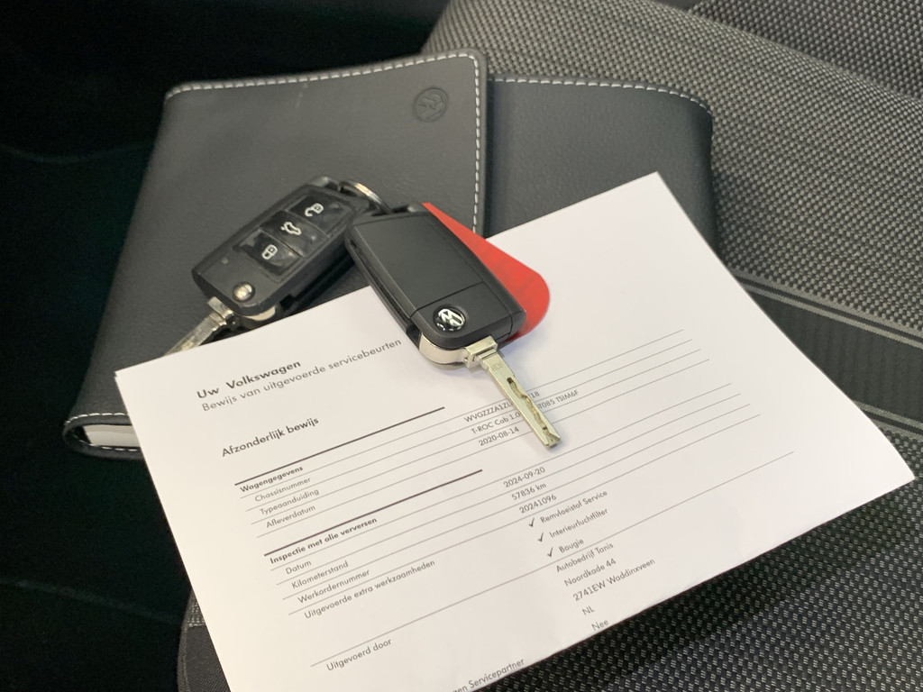 U zult verrukt zijn van de digitale wereld van mobiliteit; het digitale dashboard projecteert alles wat u nodig heeft om uw rit aangenaam en veilig te maken. Wat is de onderhoudsstatus van deze auto? U checkt het snel, simpel en overal via uw smartphone. Onderweg kunt u veilig genieten van het audiosysteem met DAB-radio en het navigatiesysteem. Want in deze Volkswagen bedient u ze vanaf het stuurwiel of met uw stem. Met de automatische airconditioning selecteert u de gewenste temperatuur. Het systeem doet de rest. U kunt bij het inparkeren natuurlijk niet aan alle kanten ogen hebben. Daarom is deze Volkswagen T-Roc Cabrio voorzien van parkeersensoren! Natuurlijk behoren regensensor, lederen stuur, isofix-aansluiting, centrale deurvergrendeling met afstandsbediening en lederen versnellingspook ook tot de uitrusting van deze complete auto.