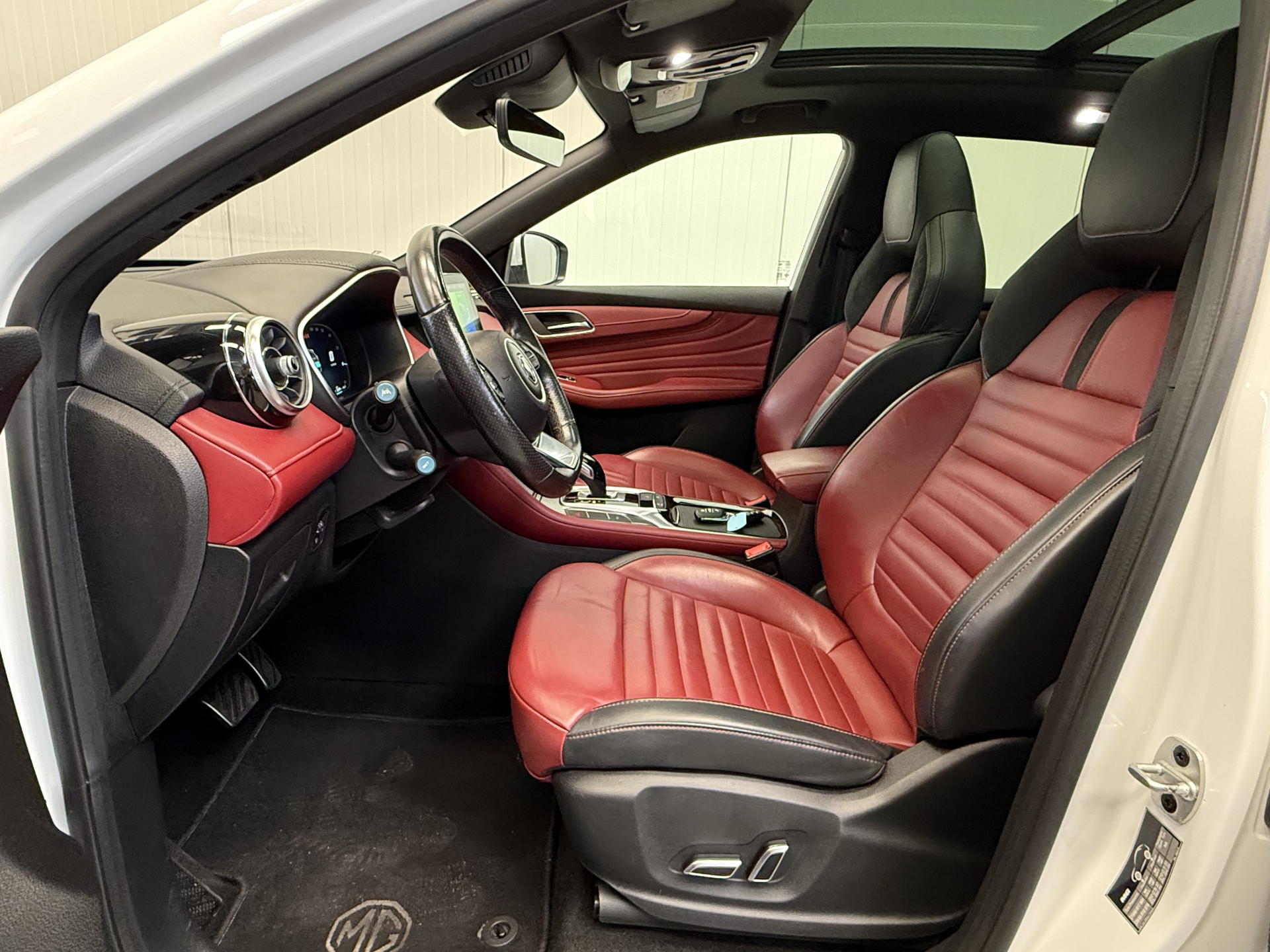 Qua leeftijd komt deze MG EHS net kijken. Frisse kilometerstand, laatste technologie, actuele snufjes. Net niet nieuw, en dus heel betaalbaar! Zuinig rijden, minder uitstoot, maximale radius. Door de hybride motor die elektrisch én benzinerijden mogelijk maakt is dit de ideale combi. Een fraai lederen interieur, dat in daglicht baadt dankzij het elektrisch bediende glazen panorama dak. En voor 'handsfree' in- en uitladen vindt u aan de achterzijde de elektrisch bedienbare achterklep. Tijdens gure dagen is het prettig zitten in de verwarmbare voorstoelen. Natuurlijk zijn de sportstoelen super functioneel als het rechterpedaal ingetrapt wordt. Maar ook voor het uiterlijk doen ze veel! Verder is de MG uitgerust met: 18 inch lichtmetalen velgen, LED koplampen, donker getint glas achter, in delen neerklapbare achterbank, LED-achterlichten en verstelbare lendensteunen.
