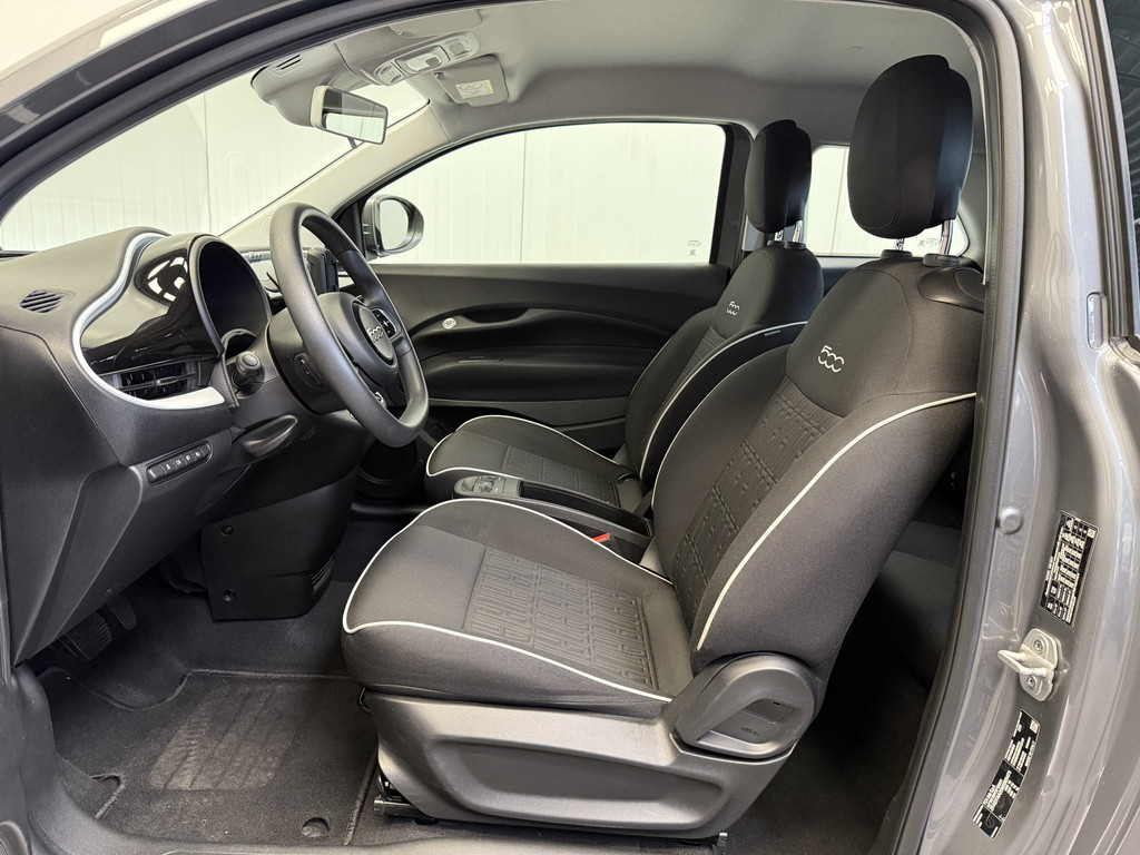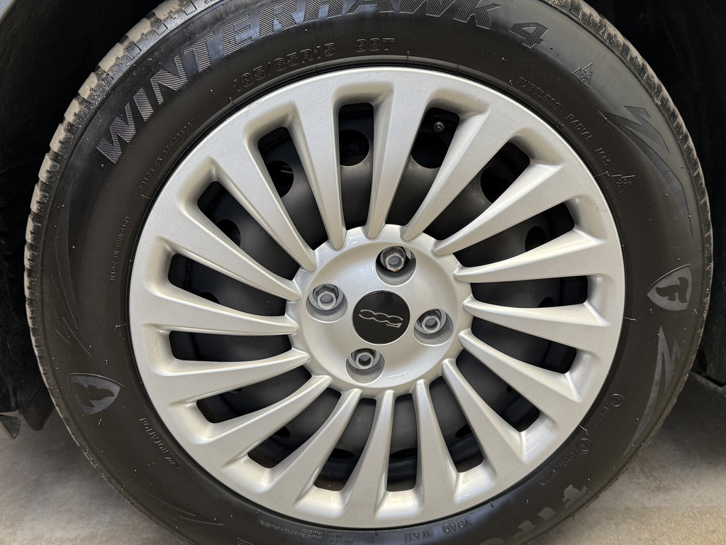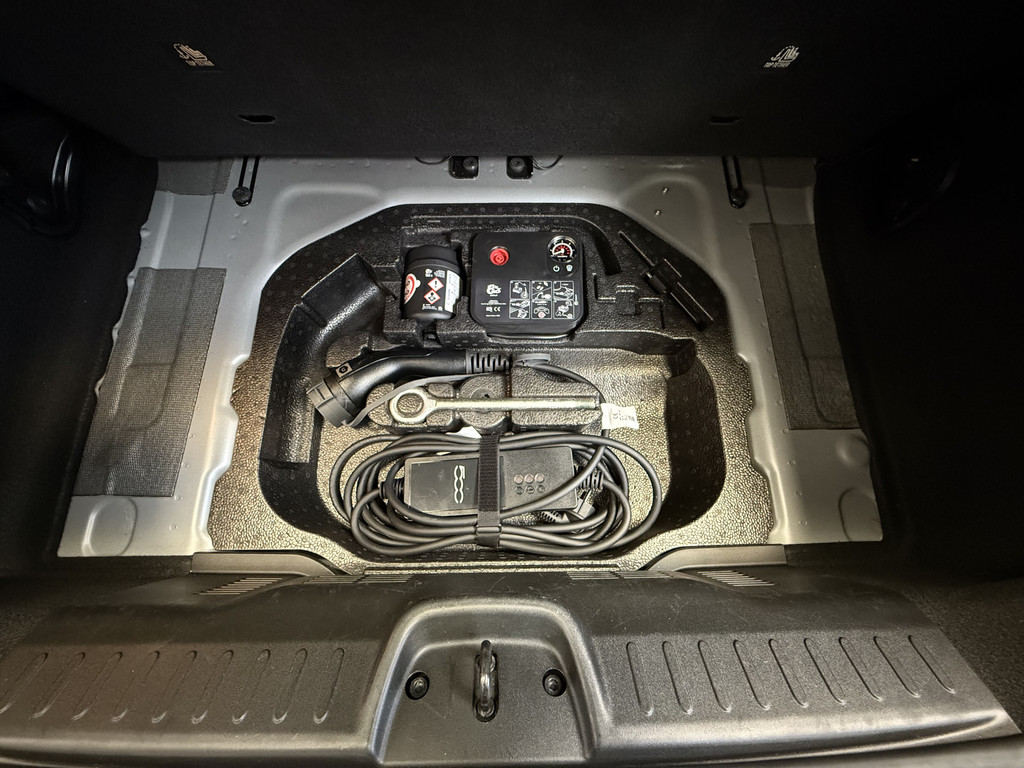 Deze Elektrische Fiat 500e heeft een onderhoudsbeurt gehad inclusief 4 nieuwe AllSeason banden met sneeuwvlok markering. U kunt dus ook op wintersport met deze Fiat.