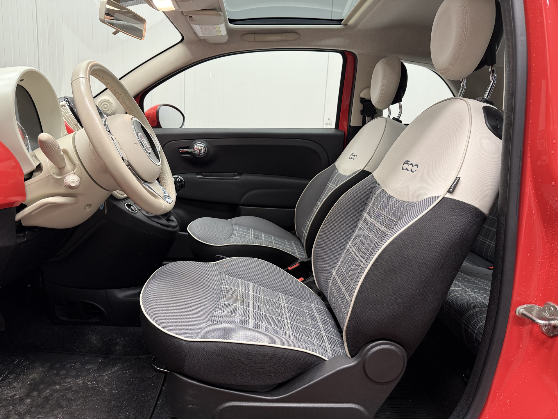 U mag 'm natuurlijk klein noemen. Maar compact komt meer in de buurt. In deze Fiat vindt u een benzinemotor en een handgeschakelde vijfversnellingsbak. 's Winters op pad gaan kan een behoorlijke uitdaging zijn. Daarom is deze Fiat 500 voorzien van weldadige verwarmbare voorstoelen. Overdag een weidse zichthoek en 's avonds het lichtspel in de binnenruimte: dat geeft het glazen panoramadak! Ook 16 inch lichtmetalen velgen, LED-dagrijverlichting, in delen neerklapbare achterbank en snelheidsafhankelijke stuurbekrachtiging horen tot de voorzieningen op deze auto.
