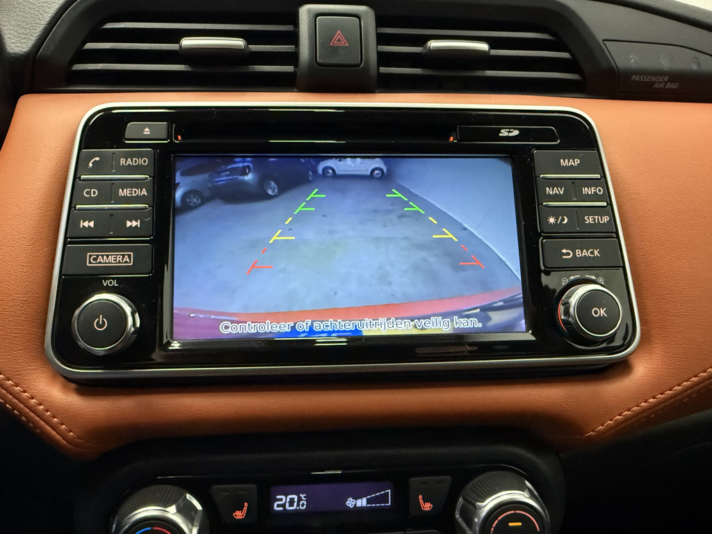 Bij het inparkeren laat de achteruitrijcamera precies zien hoeveel meter... decimeter... centimeter ruimte er nog is! Ook het geluid aan boord is top-of-the-line. Het high performance audiosysteem levert superieure prestaties. De kans op een kop-staart botsing wordt sterk gereduceerd door het systeem van achteropkomend verkeer waarschuwing. Bij de luxe van deze auto hoort ook automatische airconditioning. Het luxeniveau in deze Nissan is niet alleen gericht op comfort, maar ook op uw veiligheid. Tal van sensoren helpen u om de omgeving in de gaten te houden. De automatisch inschakelbare verlichting zorgt dat automatisch de verlichting wordt ingeschakeld als het donker wordt, wat bijvoorbeeld in tunnels erg handig is. En de regensensor zet de ruitenwissers aan zonder dat u eraan hoeft te denken. Ook full map navigatiesysteem, DAB ontvangst, cruise control, keyless entry, isofix-aansluiting en centrale deurvergrendeling met afstandsbediening zijn aan boord.